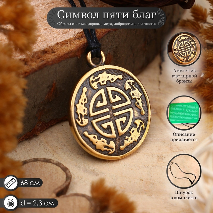 Амулет «Символ пяти благ» (счастье, здоровье, мир, добродетель, долголетие), 68см