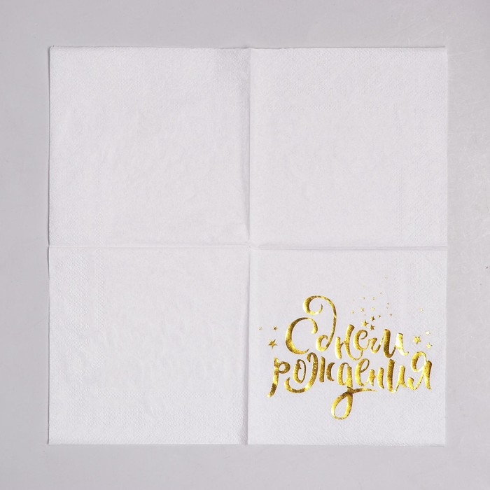 Салфетки бумажные «С днём рождения», 25х25 см, 20 шт., золотое тиснение, белый фон