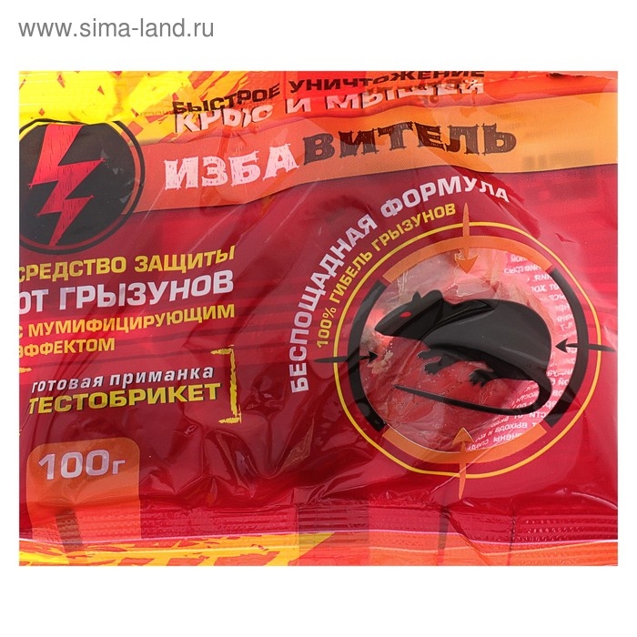 Готовая пищевая отравленная приманка для уничтожения серых и черных крыс, домовых мышей, полевок и других мышевидных грызунов для применения населением в быту.