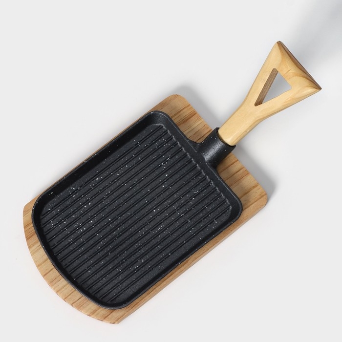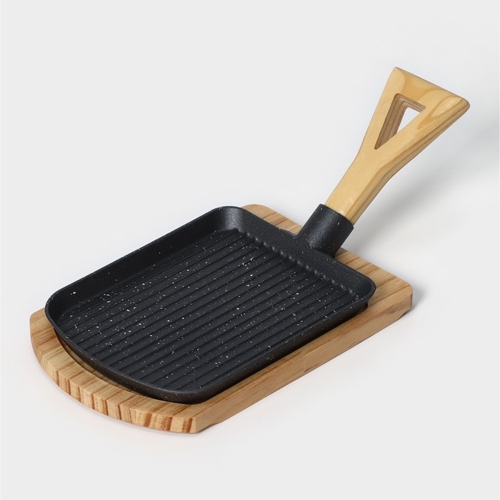 Сковорода чугунная на деревянной подставке «Лопата. Гриль», 23×18 см, цвет чёрный