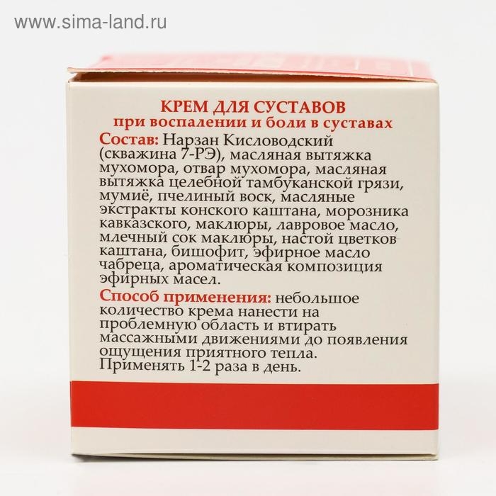 Крем изготовлен на основе масляной вытяжки из мухомора. Компонент активно применяют в народной медицине для оздоровления суставов.