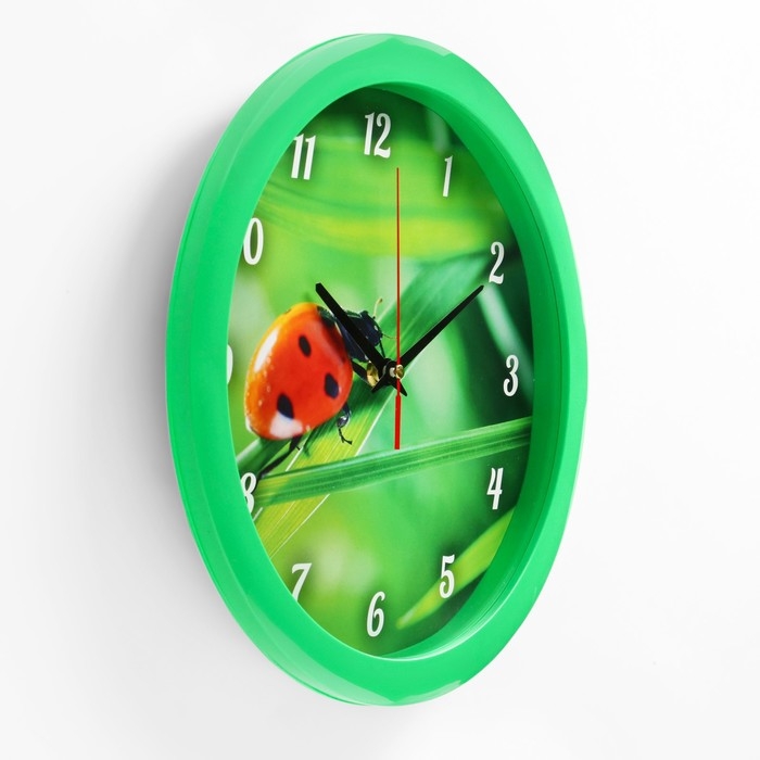 Часы настенные, d-28 см, интерьерные, "Божья коровка", бесшумные