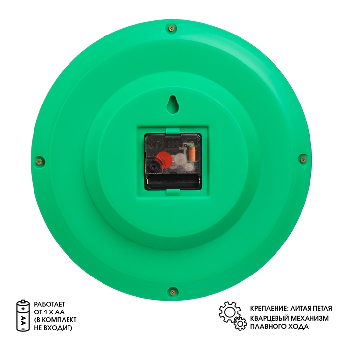 Круглые настенные часы с бесшумным кварцевым механизмом станут отличным украшением детской комнаты. Общий диаметр часов 28 см, большие четкие цифры, диаметр циферблата 24 см. Крепление-литая петля. Циферблат защищён прочным минеральным стеклом. Кварцевый механизм имеет плавный ход и работает от одной батарейки типа АА. Батарейки в комплект не входят.
