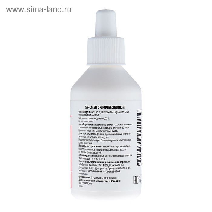 Средство для полоскания полости рта «Саномед» с хлоргексидином 0,05%, антибактериальное, 100 мл