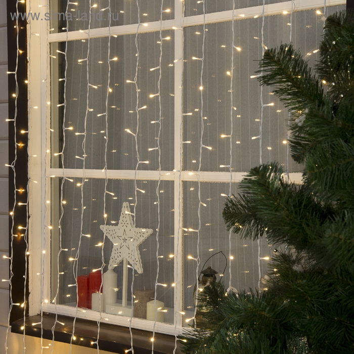 Гирлянда «Занавес» 2 × 6 м, IP44, УМС, белая нить, 1440 LED, свечение тёплое белое, 220 В