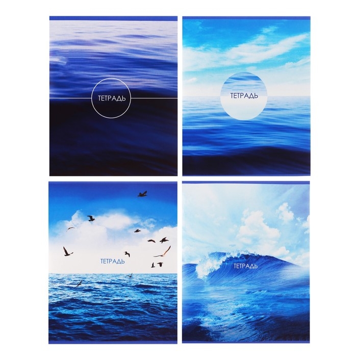 Тетрадь 96 листов в линейку Calligrata "Морской пейзаж", обложка мелованный картон, блок №2, белизна 75% (серые листы), МИКС