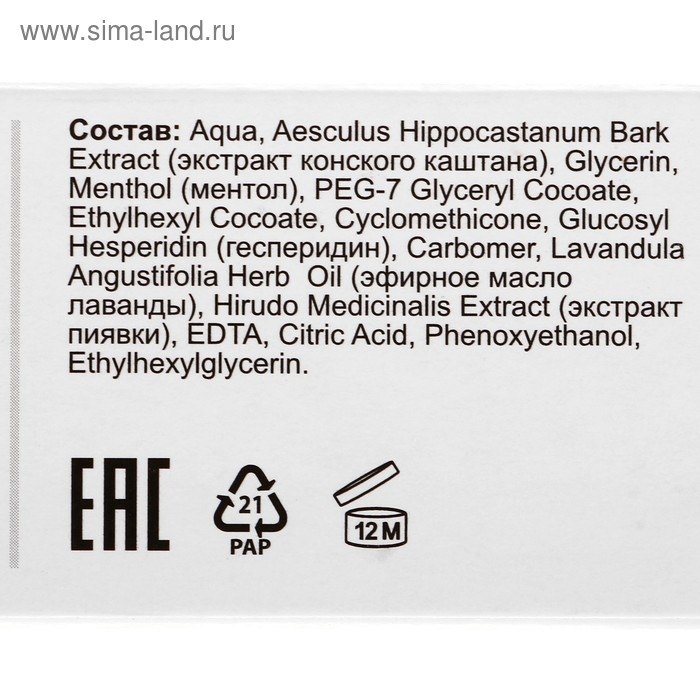 Гель бальзам для ног BIO экстракт пиявки и троксерутин, 50 мл