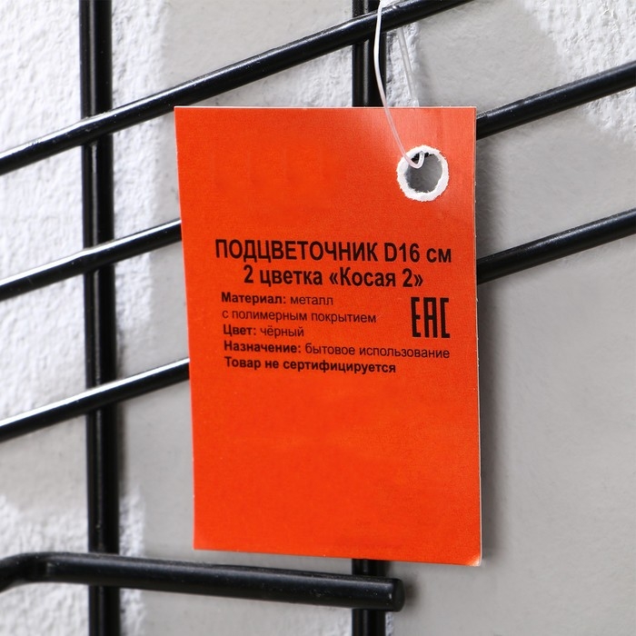 Подвес для кашпо, настенный, d = 16 см, чёрный, «Косая-2»