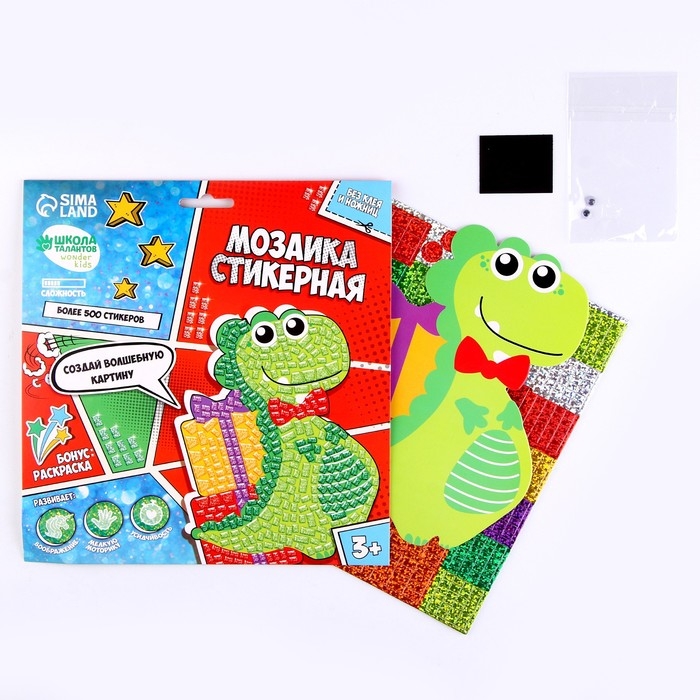 Аппликация стикерами форменная «Динозавр», набор для творчества, стикерная мозаика — это простая и эффектная аппликация!