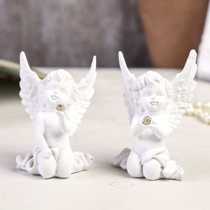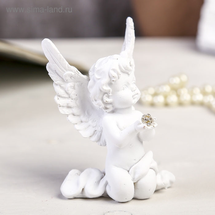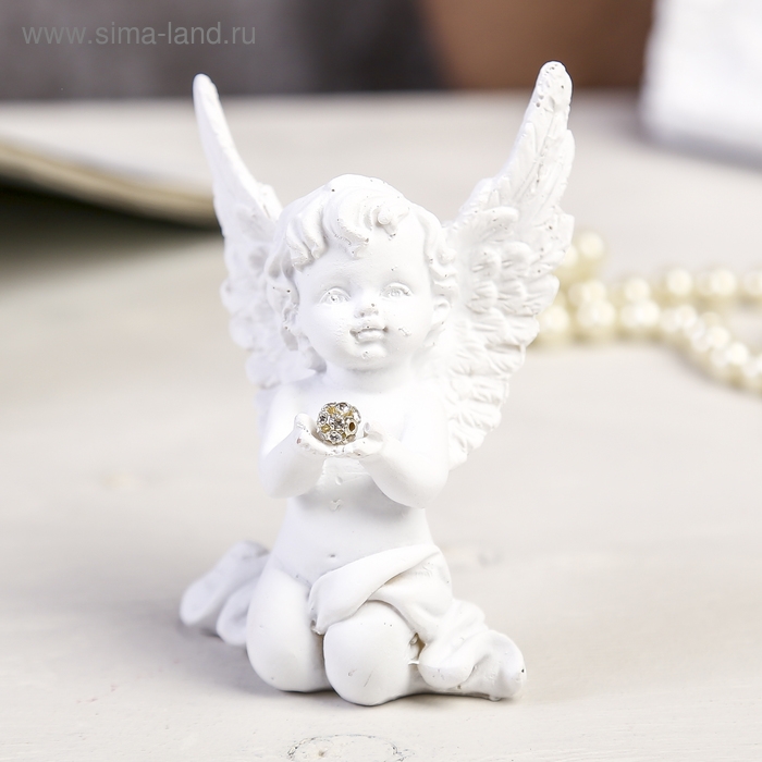 Сувенир полистоун "Белоснежный ангел с шариком из страз сидит" МИКС 8х6х2,5 см