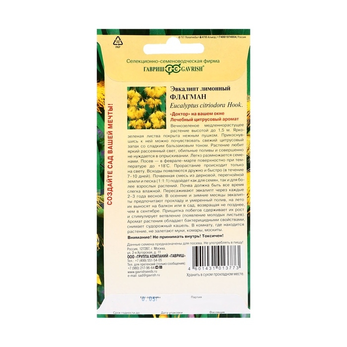 Семена комнатных цветов Эвкалипт "Флагман", ц/п, 0,05 г