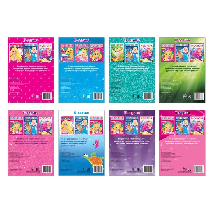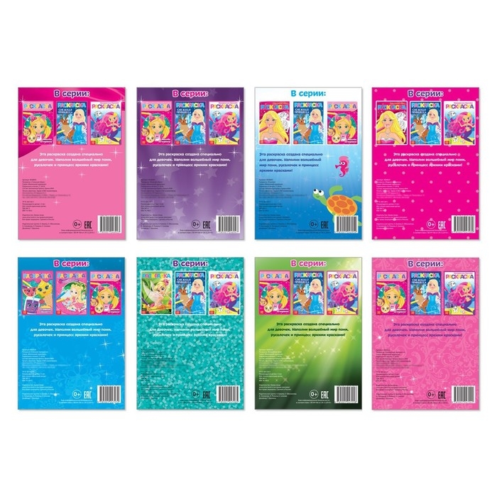 Раскраски для девочек набор из 8 шт. по 12 стр., А5