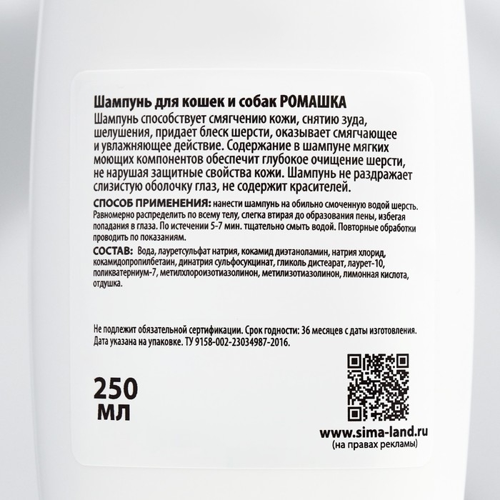 Шампунь "Пижон" для кошек и собак, с ароматом ромашки, 250 мл