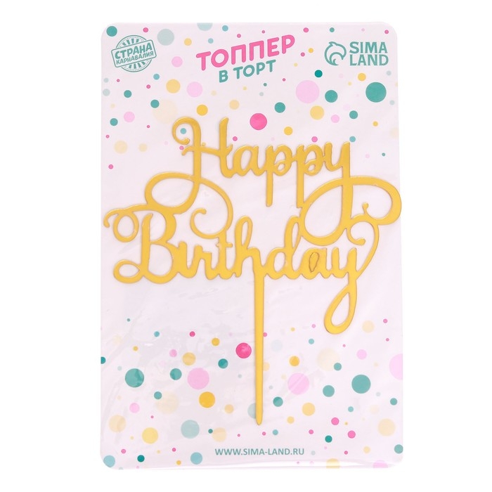 Топпер "Happy Birthday", круг, золото, Дарим Красиво