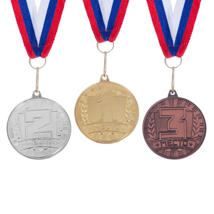 Медаль призовая 013, d= 5 см. 1 место, триколор. Цвет золото. С лентой