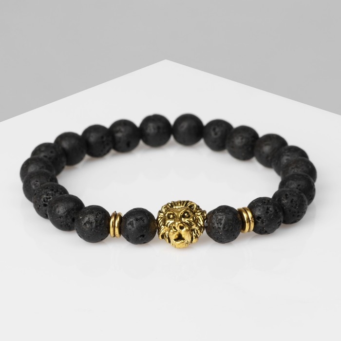Браслет унисекс «Лев» лава, цвет чёрный с чернёным золотом, d=6 см