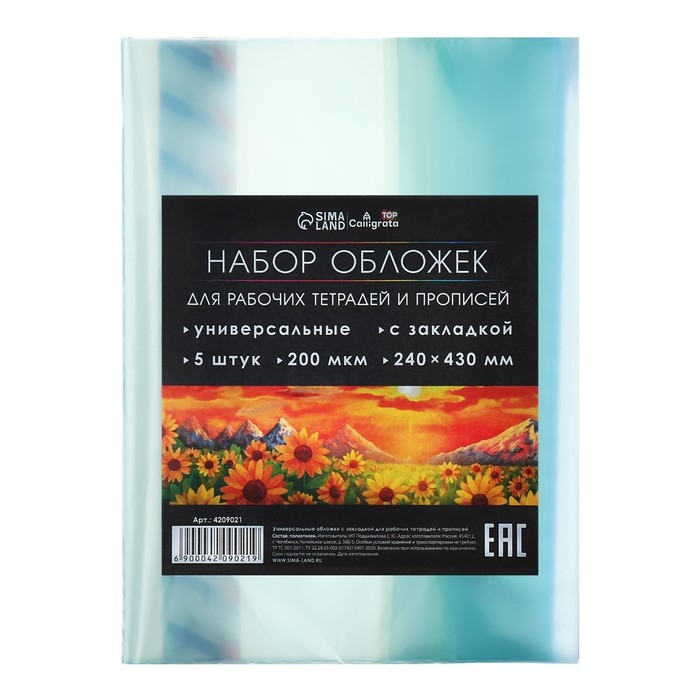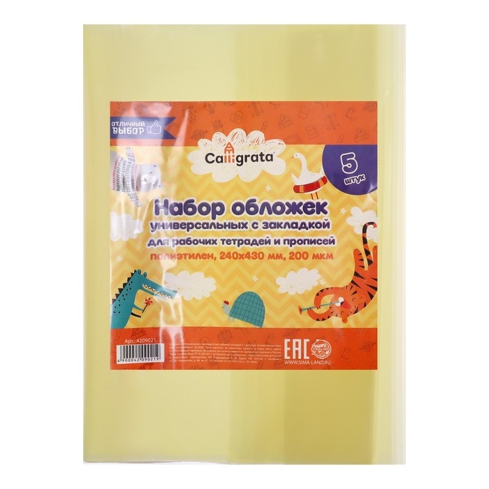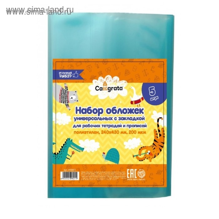 Набор обложек ПЭ 5 штук, 240 х 430 мм, 200 мкм, для прописей и рабочих тетрадей, универсальная, с закладкой, МИКС