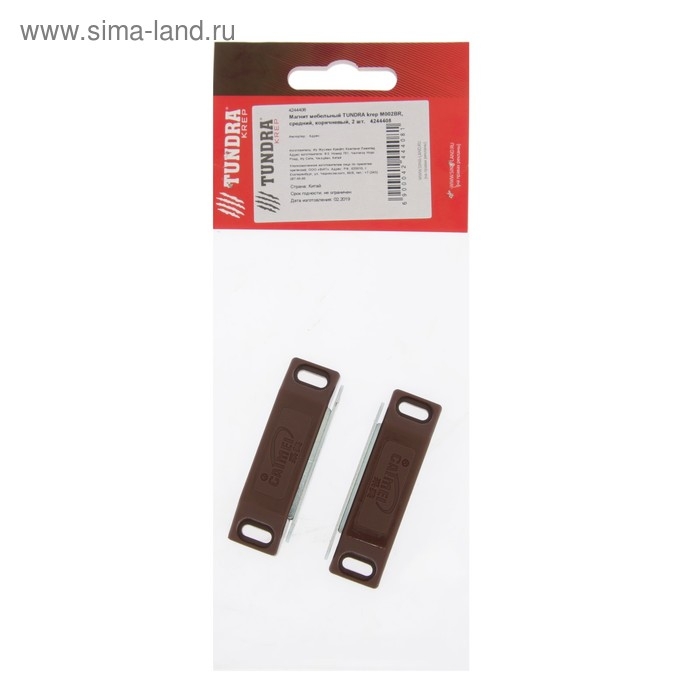 Магнит мебельный ТУНДРА M002BR, 60х13 мм, средний, коричневый, 2 шт.