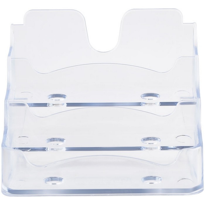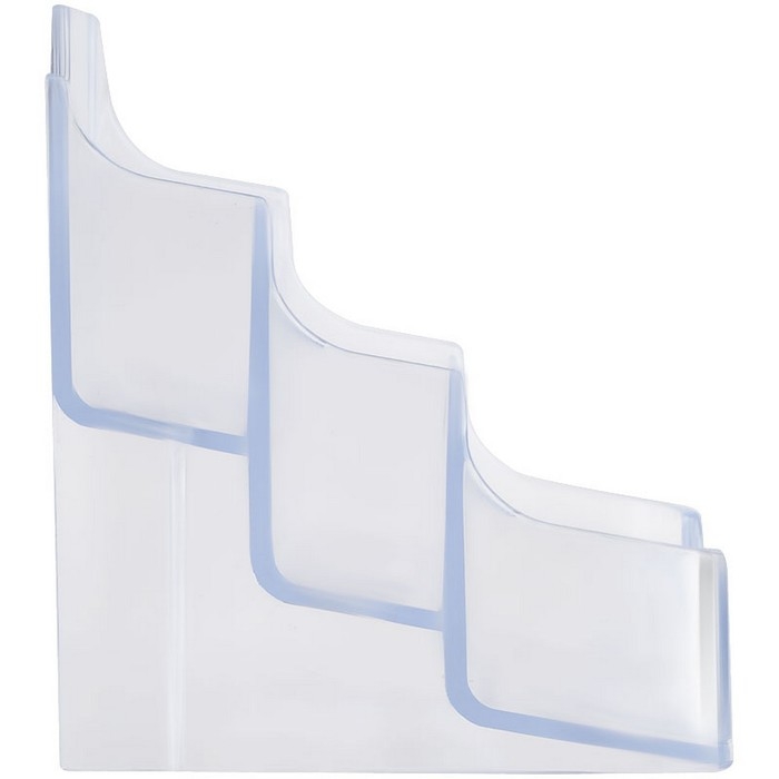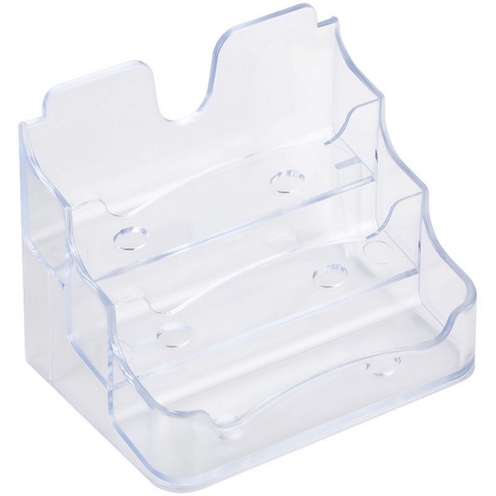Подставка под визитки имеет 3 отделения, расположенных каскадом.