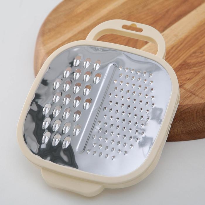 - Универсальность: тёрка подходит для измельчения разных продуктов — сыра, овощей, фруктов.