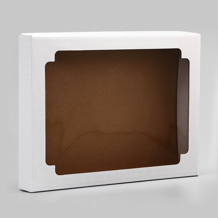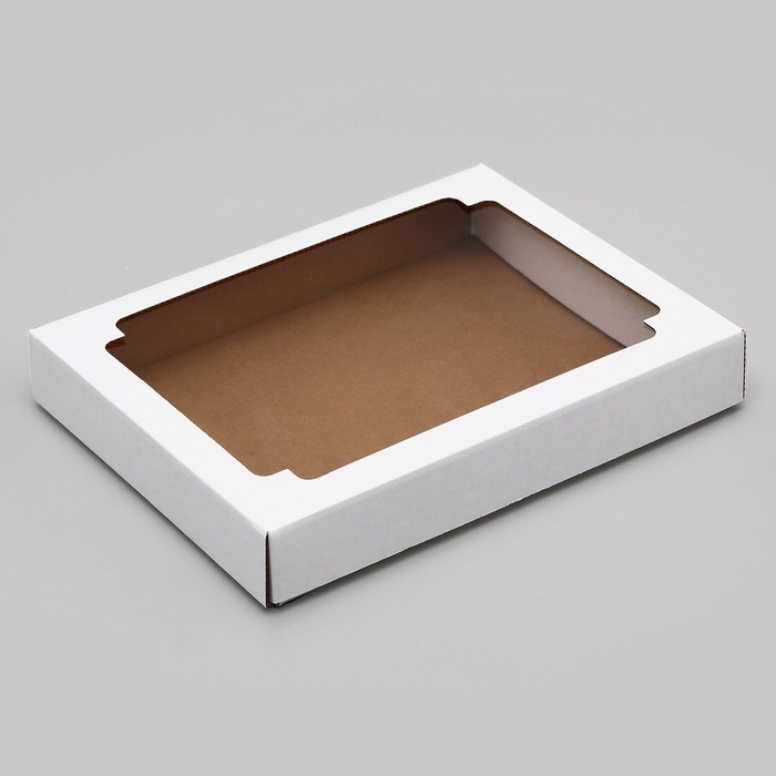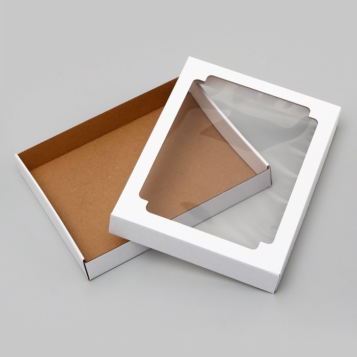 Коробка сборная, крышка-дно, с окном, белая, 26 х 21 х 4 см