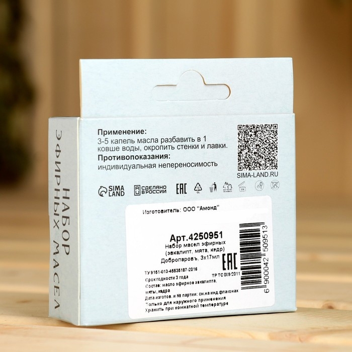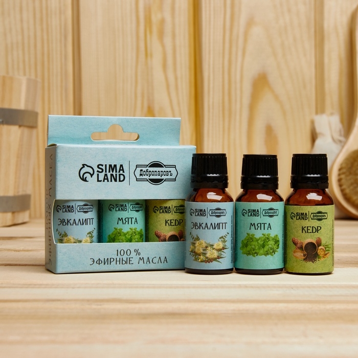 Набор эфирных масел эвкалипт, мята, кедр, "Добропаровъ", 3 шт по 17 мл