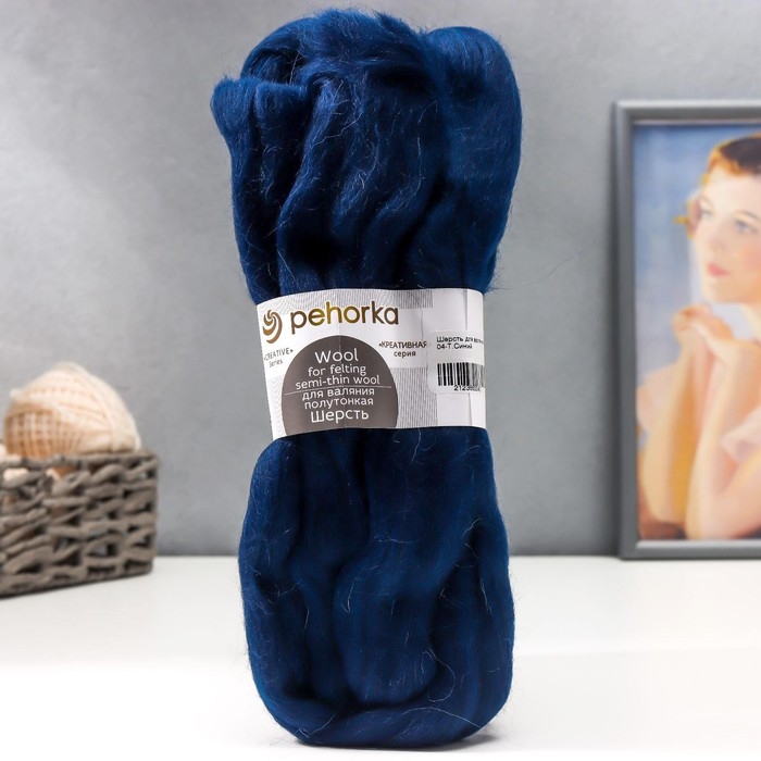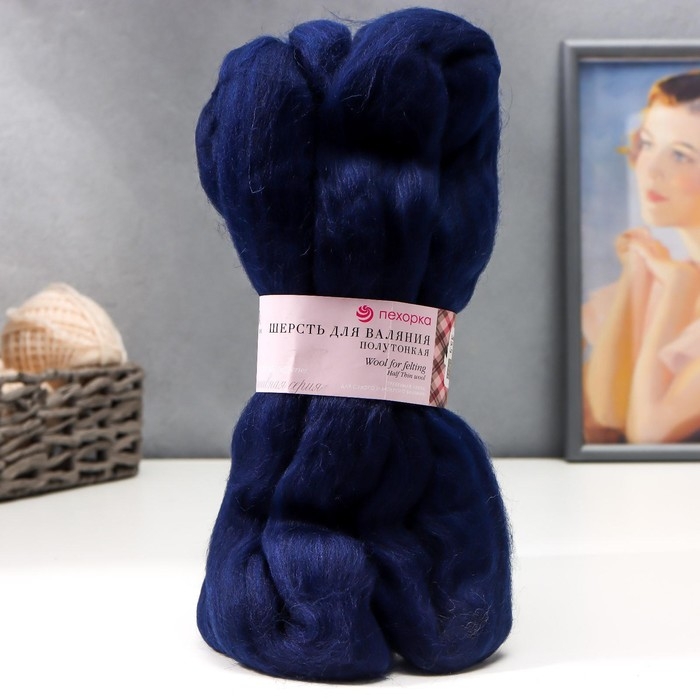 Шерсть для валяния 100% полутонкая шерсть 50гр (04 т. синий)