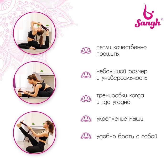 Ремень для йоги Sangh, 180х4 см, цвета МИКС