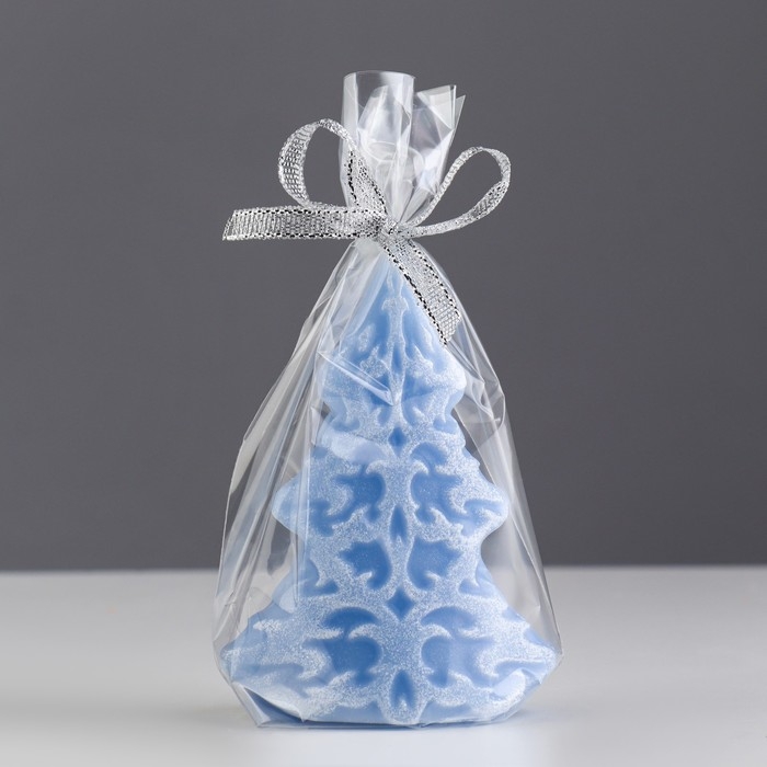 Свеча декоративная "Морозный узор", 7×4,5×10 см, голубая