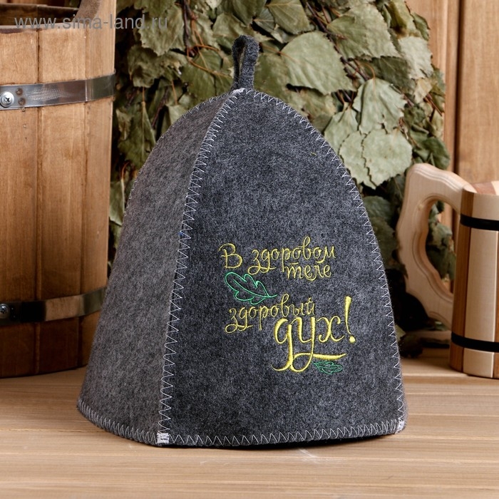 Шапка для бани с вышивкой "В здоровом теле, здоровый дух", серая