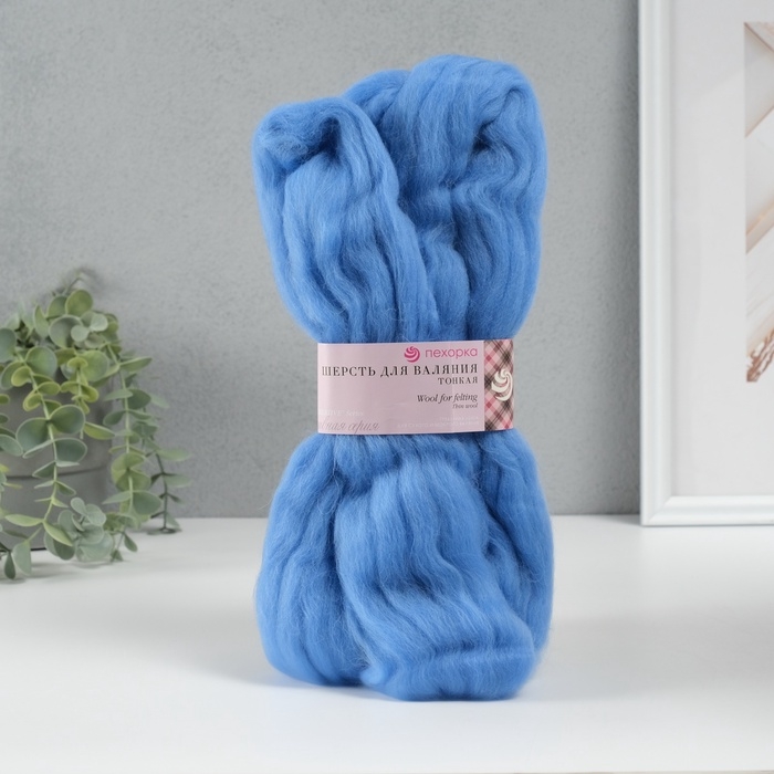 Шерсть для валяния 100% тонкая шерсть 50гр (15-Т.Голубой)