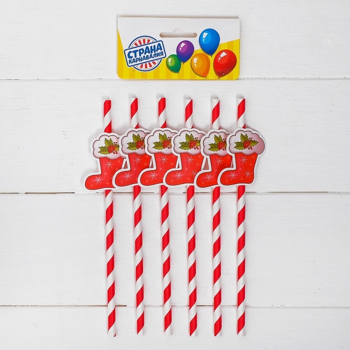 Трубочки для коктелей одноразовые «Снежинки», набор, 6 шт., цвет МИКС