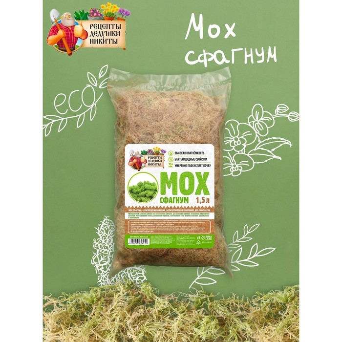 Мох сфагнум "Рецепты Дедушки Никиты" 1,5 л