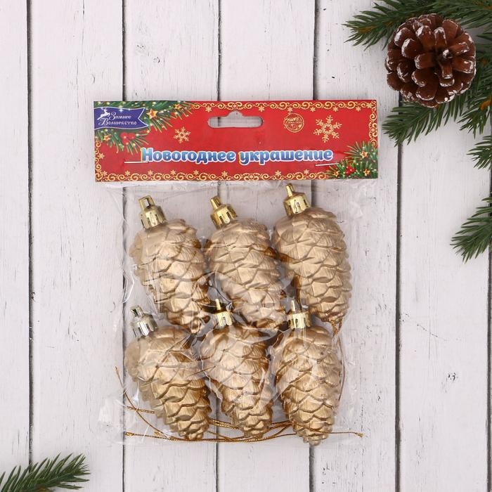 Ёлочная игрушка "Шишки" (набор 6 шт) 3,5х6 см, золото