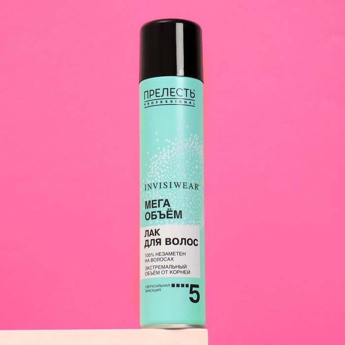 Невесомый лак для волос Прелесть Professional Invisiwear Мега объем незаметен на волосах, легко распыляется и хорошо фиксирует прическу в течение всего дня, обеспечивая вам головокружительный объем даже при неблагоприятных погодных условиях и после шапки.