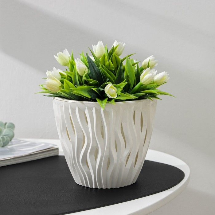Кашпо для цветов со вставкой «Вдохновение», 1,6 л, d=16 см, h=13,5 см, белое