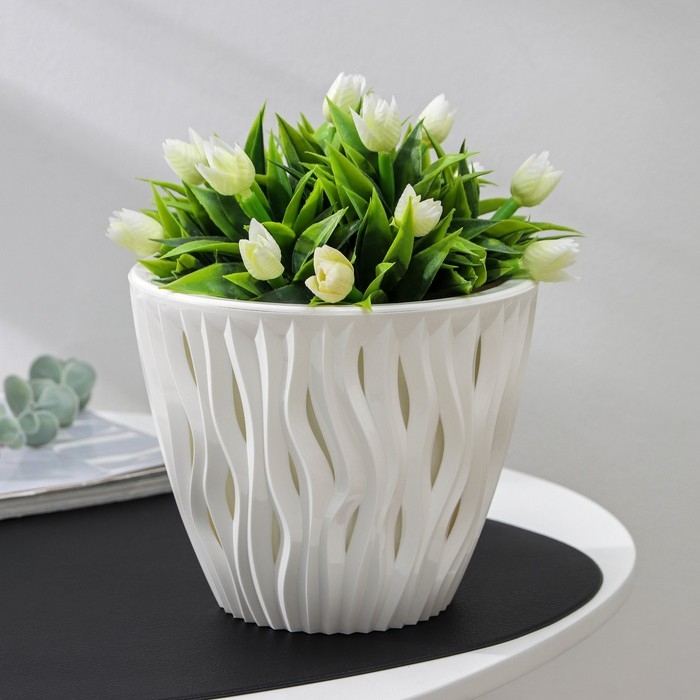 Кашпо для цветов со вставкой «Вдохновение», 2,25 л, d=17,5 см, h=15 см, белое