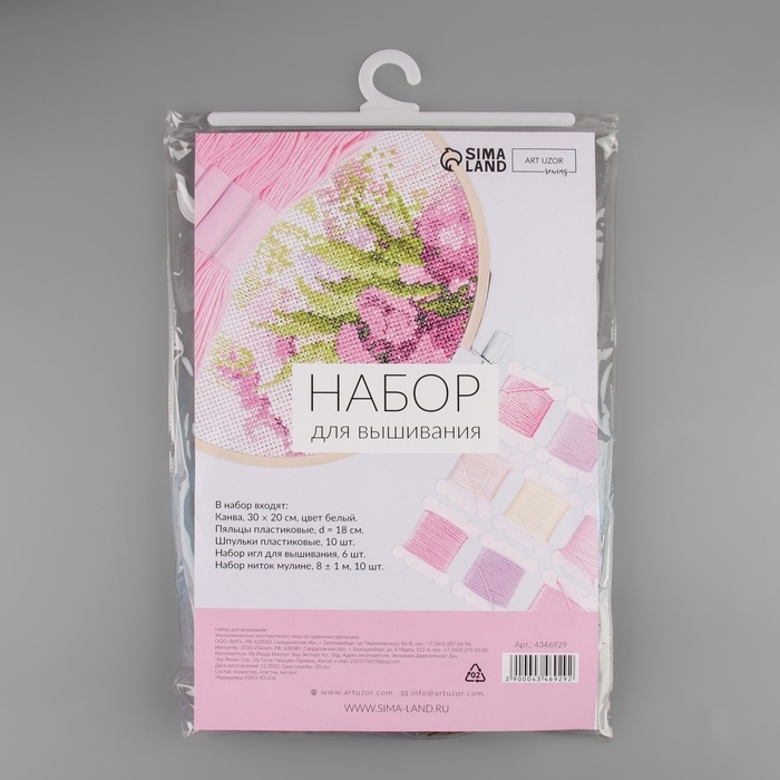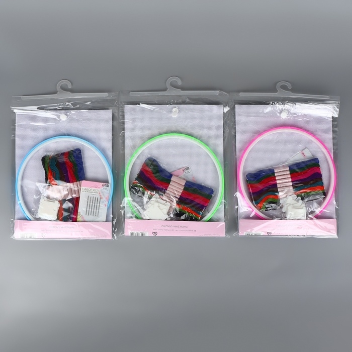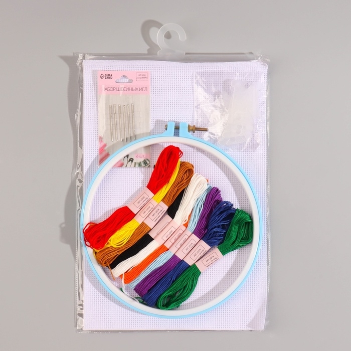 Набор для вышивания крестиком: канва без рисунка 30×20 см, нитки 10 шт, пяльцы d = 18 см, иглы 6 шт, шпульки 10 шт, цвет МИКС