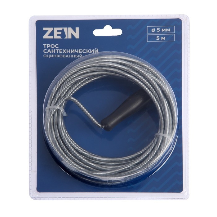Трос сантехнический ZEIN engr, оцинкованный, с ручкой, d=5 мм, L=5 м