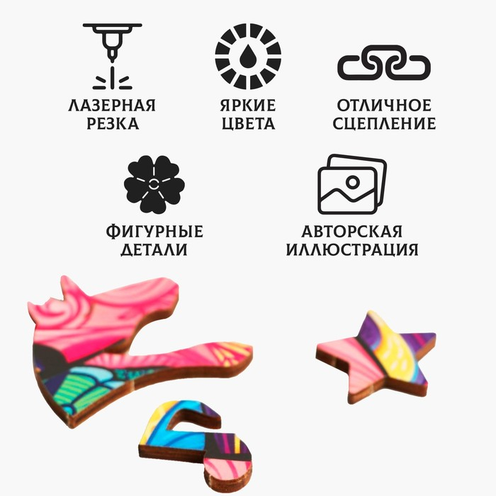 Пазл деревянный фигурный «Волшебный единорог», 69 элементов не останутся без вашего внимания!