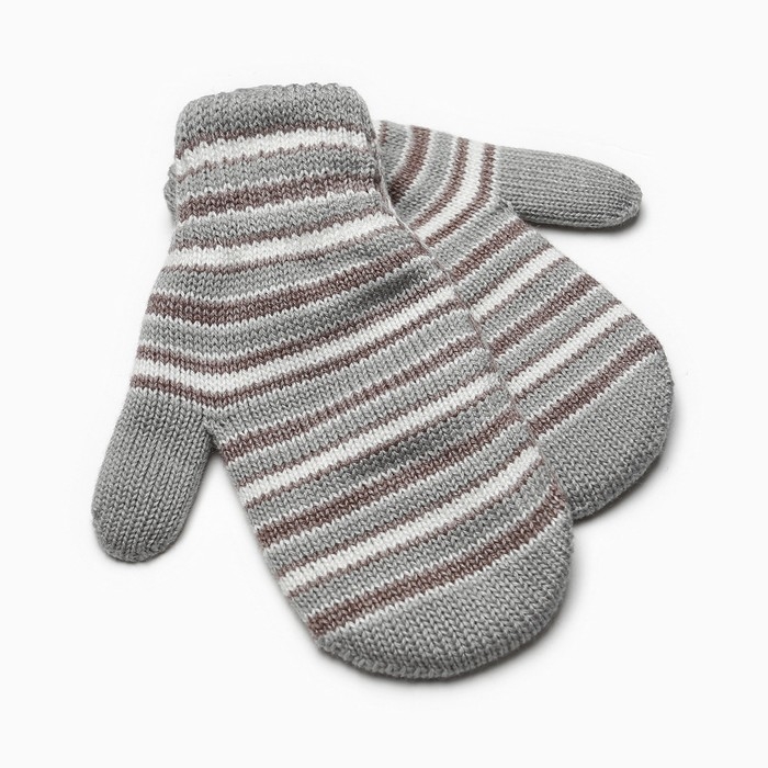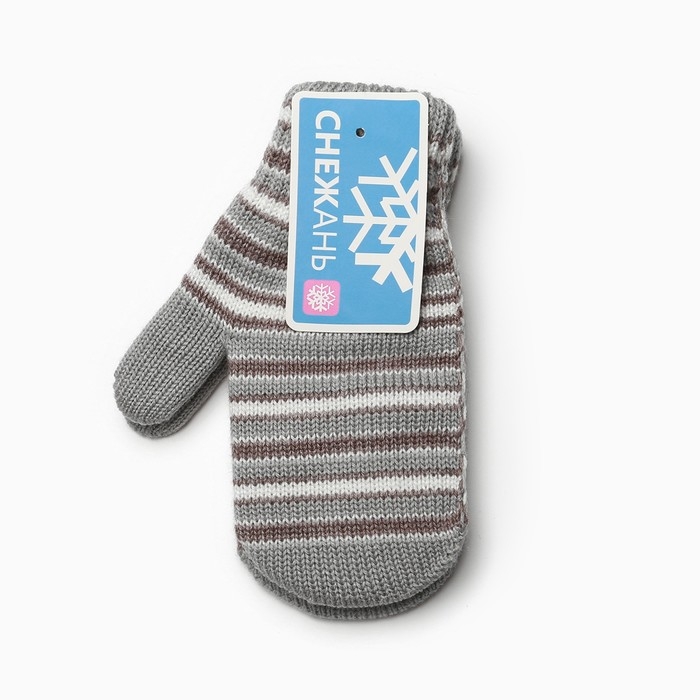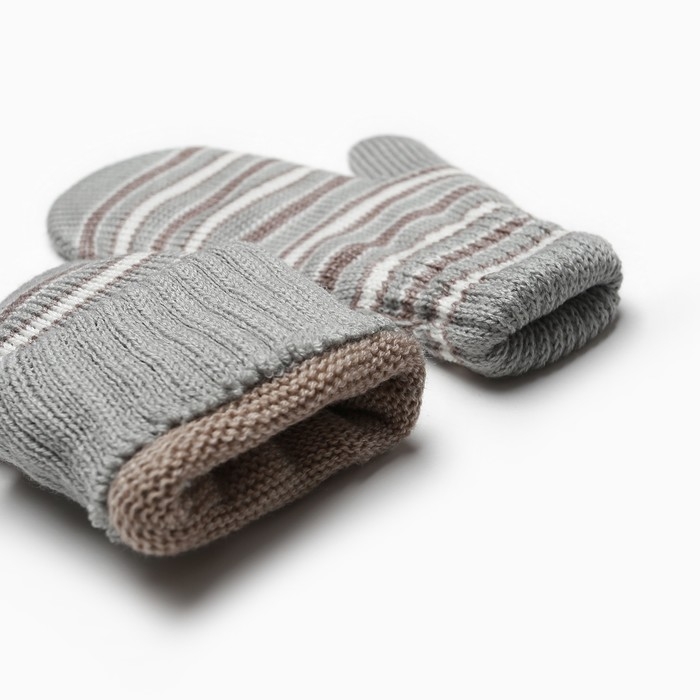 Варежки для мальчика двойные, серый с коричневым, размер 14