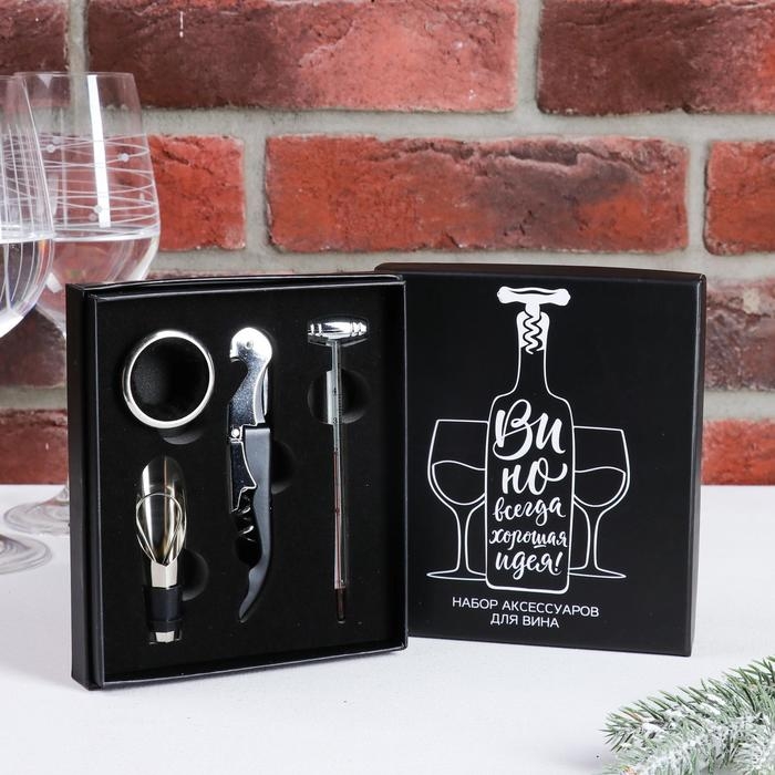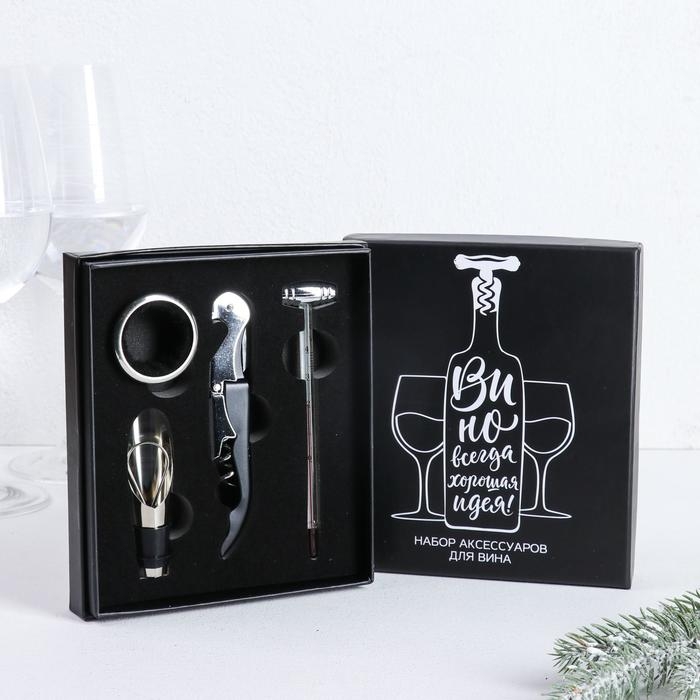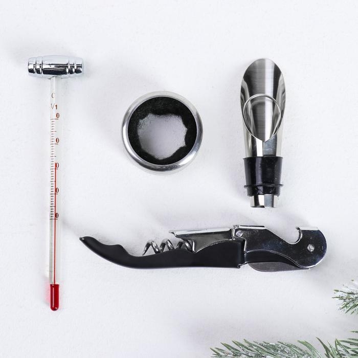 Винный набор: штопор для вина, аэратор, каплеуловитель, термометр «Вино - всегда хорошая идея»