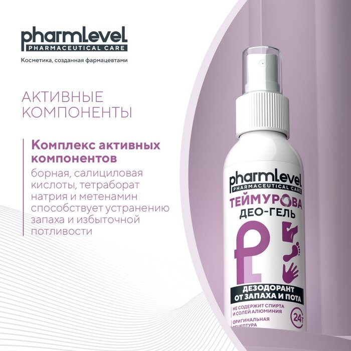 Активные компоненты в составе: борная, салициловая кислоты, тетраборат натрия и метенамин - помогают в устранении запаха и избыточной потливости.