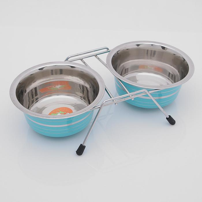 Набор из двух мисок изготовленных из качественной нержавеющей стали, которые предназначены для кормления домашних животных.