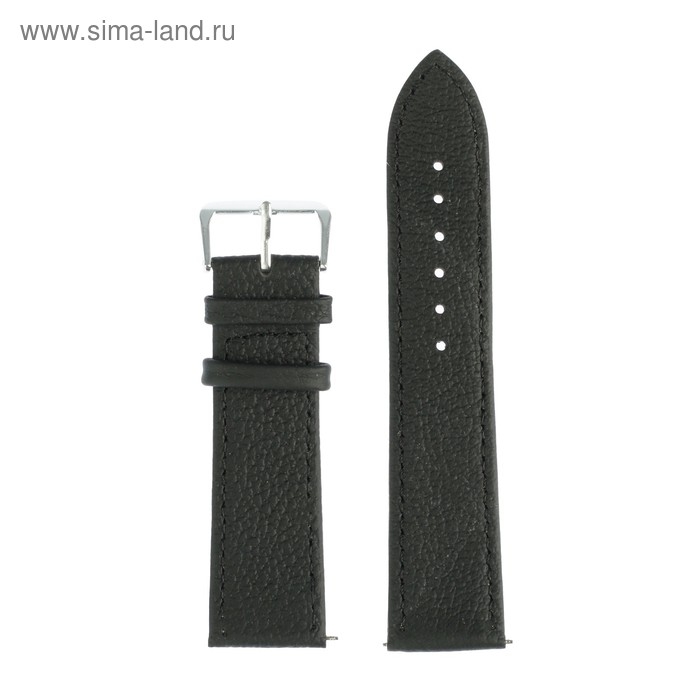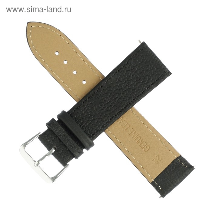 Ремешок для часов "Соломон", 22 мм, натуральная кожа, l-20 см, черный с тиснением