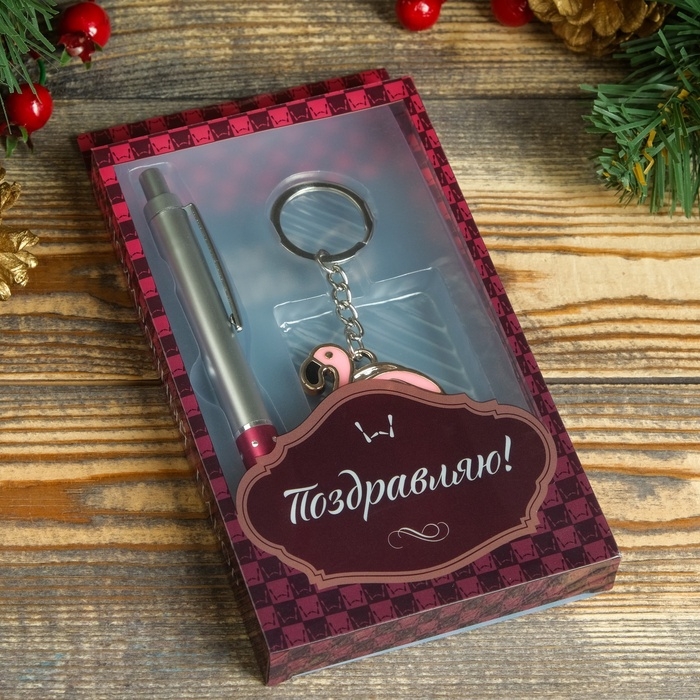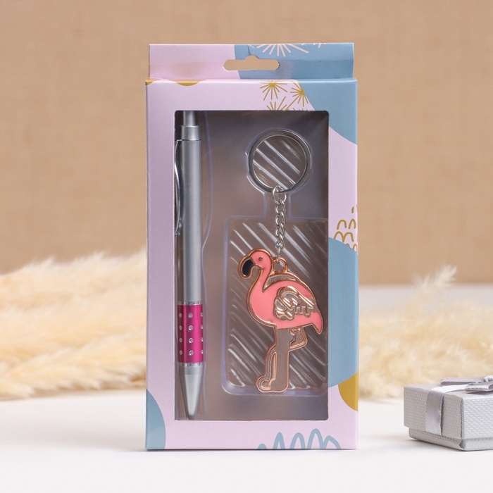 Набор подарочный 2в1 (ручка, брелок фламинго)