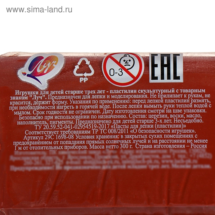 Пластилин скульптурный терракотовый, 300 г "Луч" De Luxe