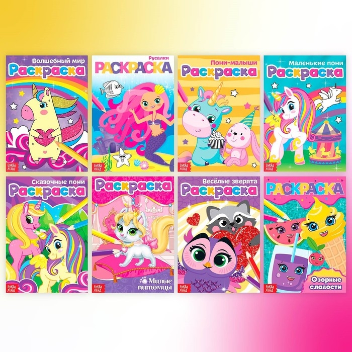Набор раскрасок «Для девочек» создан специально для маленьких принцесс, которым нравятся волшебные животные и сказочные персонажи.
