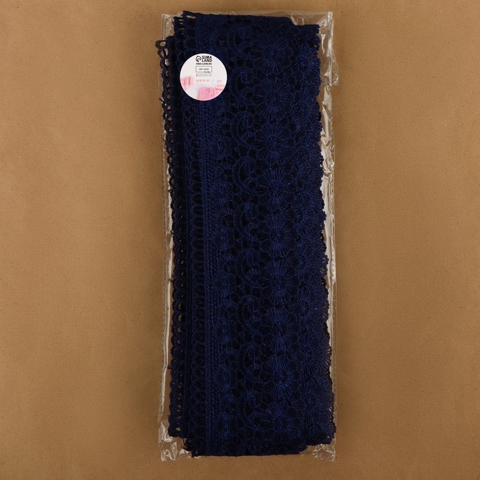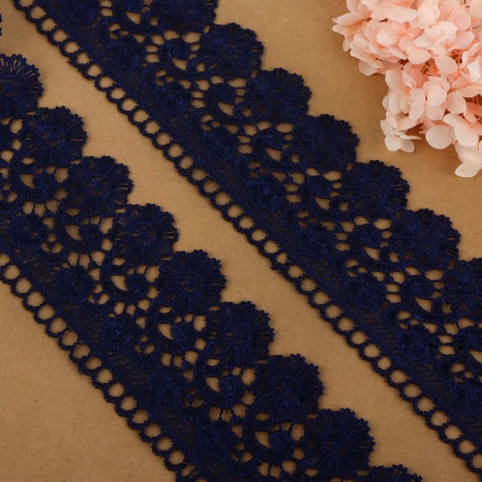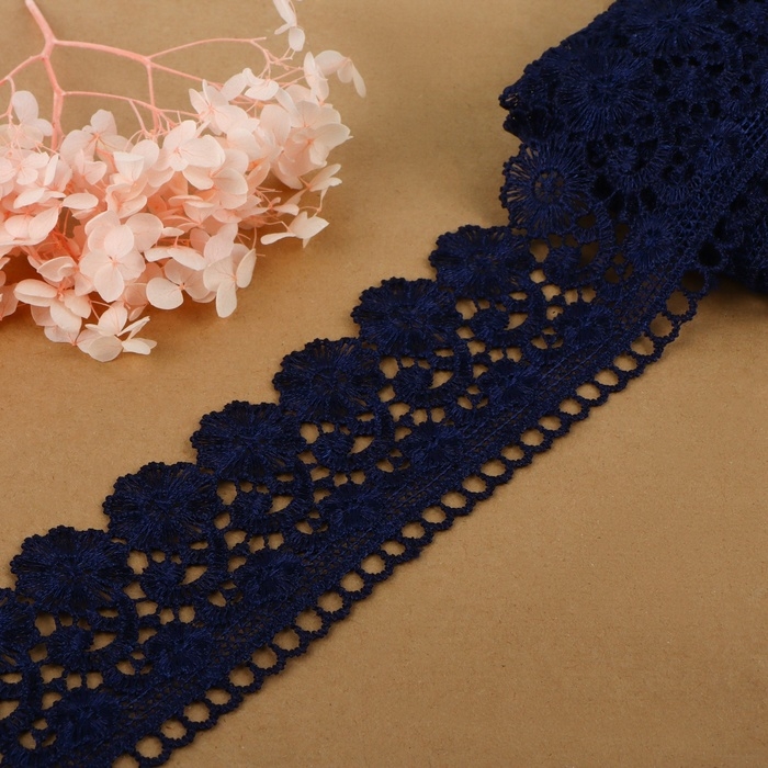 Кружево гипюровое, 60 мм × 6,8 ± 0,5 м, цвет тёмно-синий