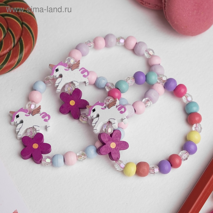 Браслет детский «Выбражулька» единорог с цветком, цвет МИКС